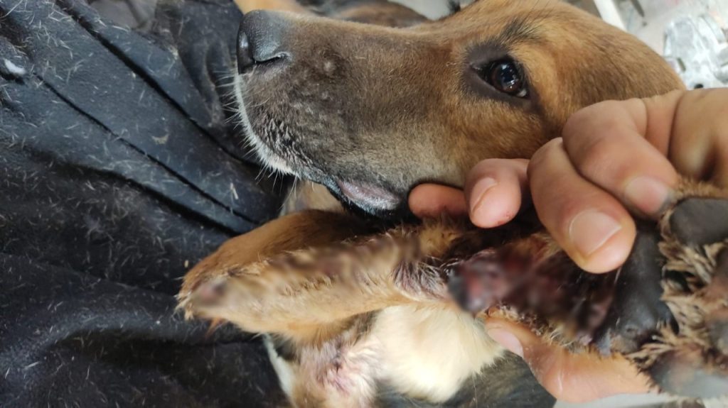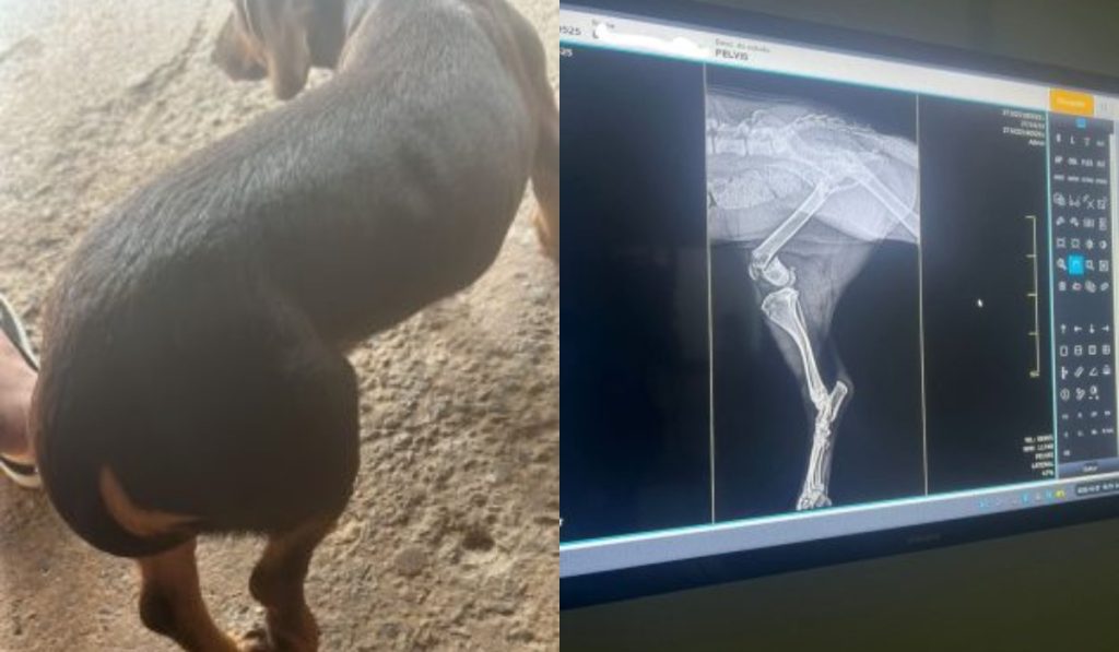 Tutor chega em casa e encontra cachorrinha com pata fraturada em Goiânia